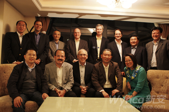 道格.约翰斯先生(后左二)、比尔.卡特先生(后右四)、 约翰.当道夫先生(后左四)、方江南副总经理(后右二)