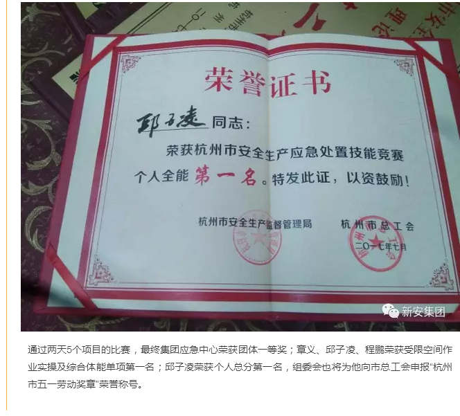 新安集团获2017年杭州市安全生产应急处置技能竞赛第一名