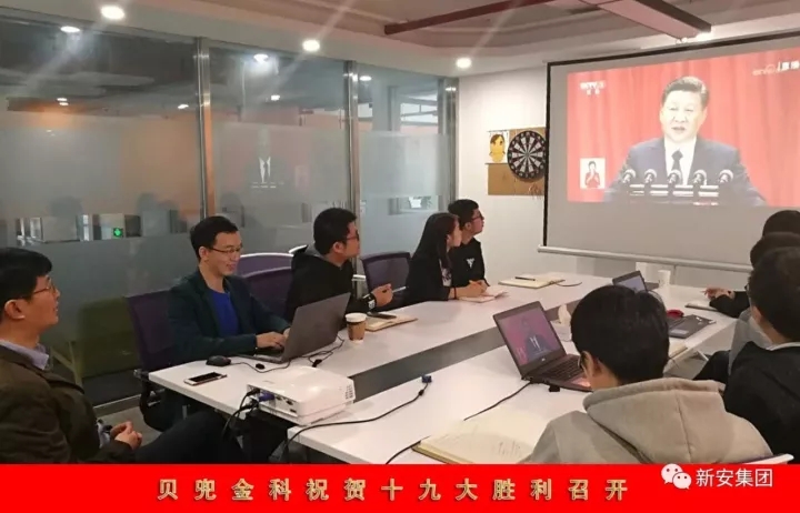 总书记报告结束后,新安集团党委书记潘秋友号召,全体党员要深入学习贯彻十九大精神,转化为不忘初心,继续努力的工作动力,站在新的起点,牢记党员职责与使命,坚定地朝着“以文化的力量推动企业和谐发展,努力打造百年新安”的美好愿景。