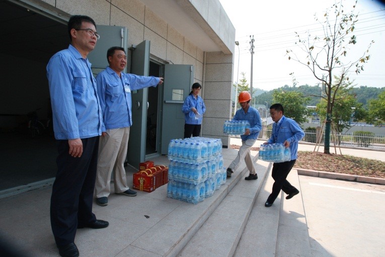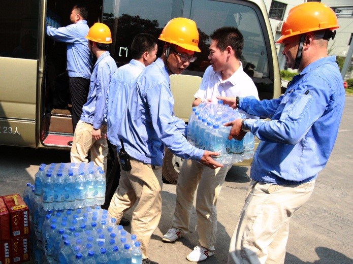 此次高温慰问是集团总部党委组织的。集团总部党委75名党员自发捐款近六千元,购买了近40箱加多宝、100箱盐汽水,给坚守一线作业的员工送上一份降温饮料,带去一份清凉。在草甘膦搬迁项目组,项目组胡江厂长表示感谢。他说,一线员工会将感动化为行动,尽早完成各项调试工作,早日生产出优质的草甘膦产品。